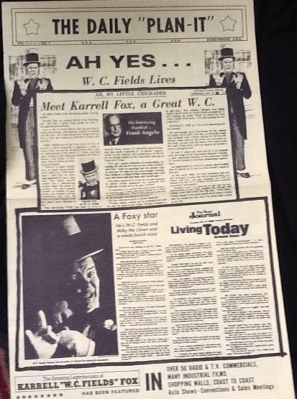 The versatile (and busy) KARRELL FOX has performed for, amazed and amused audiences in theatres, colleges, universities, on stage, screen, television (Ed Sullivan, Dick Cavett, etc.) luxury cruise ships, auto shows, trade shows, sales meetings and as an after dinner speaker and entertainer in top hotels throughout the world.
