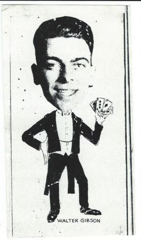 Walter Brown Gibson was born September 12, 1897 – died December 6, 1985. Gibson was an American author and professional magician, best known for his work on the pulp fiction character The Shadow. Gibson, under the pen-name Maxwell Grant, wrote "more than 300 novel-length" Shadow stories, writing up to "10,000 words a day" to satisfy public demand during the character's golden age in the 1930s and 1940s. He also authored several novels in the Biff Brewster juvenile series of the 1960s.