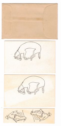 This is the "Put the two riders on the two horses" puzzle, originally developed by Sam Loyd. On the back of one of the horse cards is a photo of Dell O'Dell.