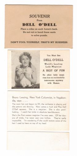 Dell O'Dell was the stage name of Nell Newton (20 Oct 1902 - 5 Feb 1962) an American magician regarded in her profession as a pioneer who provided a role model for modern female performers and noted for being one of the first magicians to appear on television. At the height of her career she was billed as "The World's Leading Lady Magician" and "The Queen of Magic."[1]