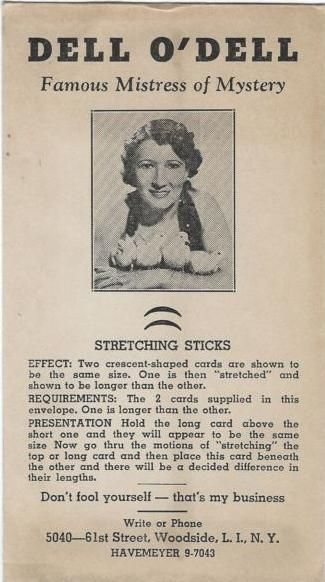 Dell O'Dell was the stage name of Nell Newton (20 Oct 1902 - 5 Feb 1962) an American magician regarded in her profession as a pioneer who provided a role model for modern female performers and noted for being one of the first magicians to appear on television. At the height of her career she was billed as "The World's Leading Lady Magician" and "The Queen of Magic."[1]
