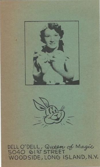 Dell O'Dell was the stage name of Nell Newton (20 Oct 1902 - 5 Feb 1962) an American magician regarded in her profession as a pioneer who provided a role model for modern female performers and noted for being one of the first magicians to appear on television. At the height of her career she was billed as "The World's Leading Lady Magician" and "The Queen of Magic."[1]