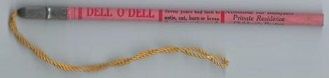 ONE OF THE FIRST WOMEN MAGICIANS IN THE WORLD, PENCIL AND STRING ADVERTISEMENT TRICK. O' DELL DATES BACK TO THE 1930'S LOTS OF HISTORY ON DELL O' DELL. TRICK IS DESIGNED WITH DELL ADVERTISEMENT FOR BOOKING PARTIES, CHILREN AFFAIRS AND BANQUETS. RARE FIND INTERESTING PIECE OF MAGICAL HISTORY.