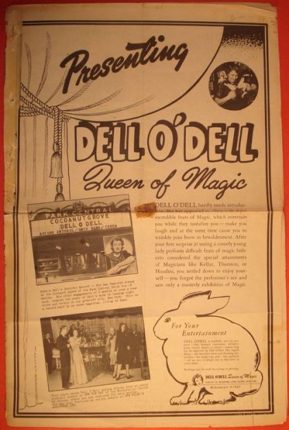 Dell O'Dell was the stage name of Nell Newton (20 Oct 1902 - 5 Feb 1962) an American magician regarded in her profession as a pioneer who provided a role model for modern female performers and noted for being one of the first magicians to appear on television. At the height of her career she was billed as "The World's Leading Lady Magician" and "The Queen of Magic."[1]
