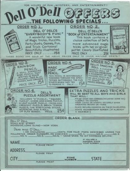O'Dell wrote extensively on the subject of magic. She contributed a column titled "Dell-lightfully" for the magicians' magazine The Linking Ring.[1] She also produced a number of books of tricks and performance routines, including Presenting Magical Moments (1939) and On Both Sides of the Footlights (1946).[6] Her "Stamp Album" presentation was published in volume 4 of the Tarbell Course in Magic.