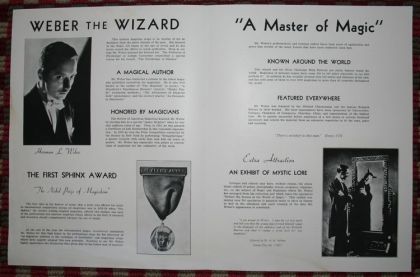 During the vaudeville heyday of stage magic, star magicians such as Thurston and Blackstone, while performing at the Lyric Theatre(Symphony Hall), could be found staying and visiting at the Weber household in Allentown. Herman L. Weber, a contemporary and friend of Houdini, was known as Namreh, the Magician and also as Weber, the Wizard. Twice, during 1930's and 40's, he traveled coast to coast with his traveling magic show. Allentown has a rich tradition of magic and a long standing chapter of the International Brotherhood of Magicians.