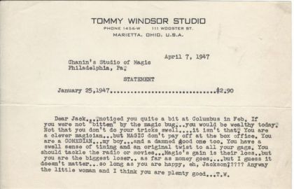 Hand-typed letter from Tommy Windsor to Jack Chanin