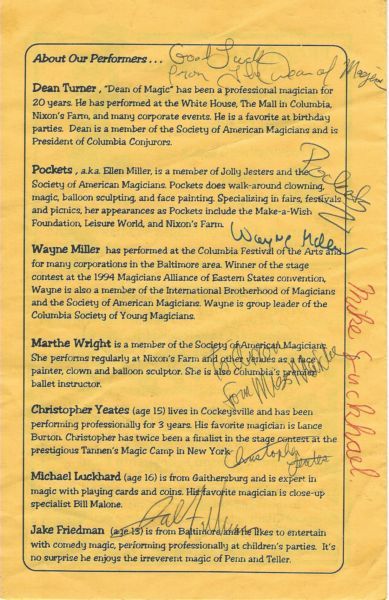 Harper's Choice Magic Show October 25, 1998 Kahler Hall 3:00 PM
