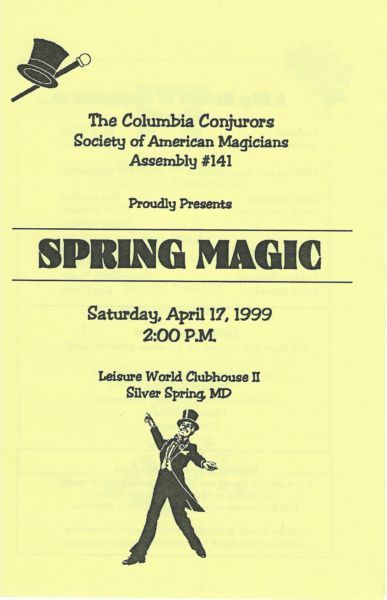 The Columbia Conjurors Society of American Magicians Assembly #141 Spring Magic Spring Magic Show April 17, 1999 2:00 PM