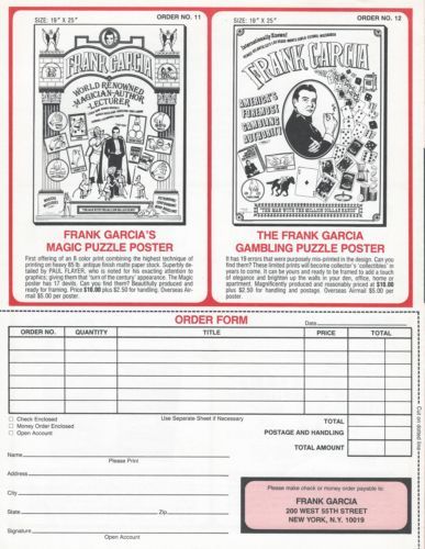It is a 4-page, 8.5"x11" flyer, printed with two colors and includes photos, product descriptions and info about Frank Garcia. They are copyright 1983 and are in very good shape.