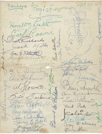 This is the sign in sheet for the September 28,1953 13th annual Magic Get Together of The Magicians' Guild of America. The sign in sheet is in great condition with Harry Blackstone signature portrait on it.SO MANY GREATS ON ONE SHEET! one of a kind.