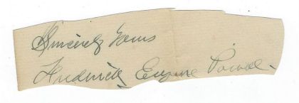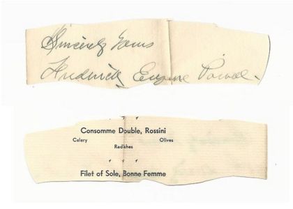 Frederick Eugene Powell autograph-Signed on back of clipped menu-ca.1930s