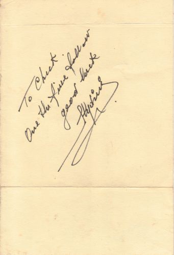 Slydini Autograph on the back of a menu ripped in half from