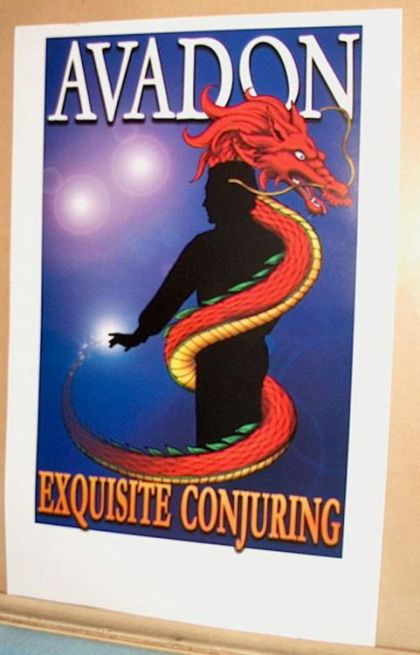 The late master magician, illusionist and pickpocket, DAVID AVADON, commissioned many fine posters for his shows. One of the most beautiful is the one offered here, the "Exquisite Conjuring" dragon art poster.