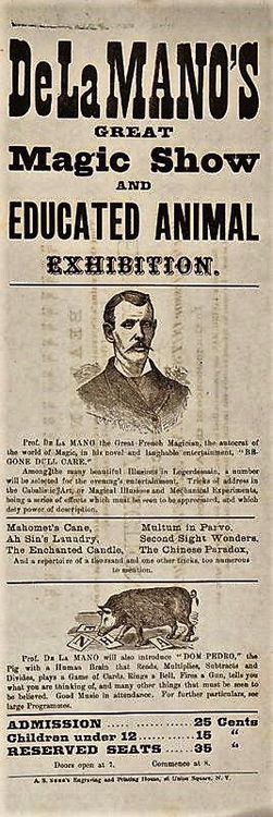 De La Mano (fl. l830s-80s), born in Austria, was the stage name of Zell Dreitzehn. he Toured Europe for 4 decades before his 1st USA tour in 1876, with a third and final one in 1881.[1]