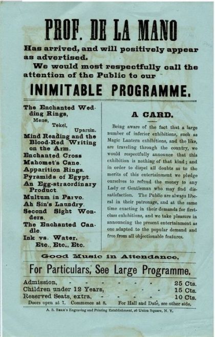 This and other magic posters was found still wrapped in the original printer's invoice dated 1877.