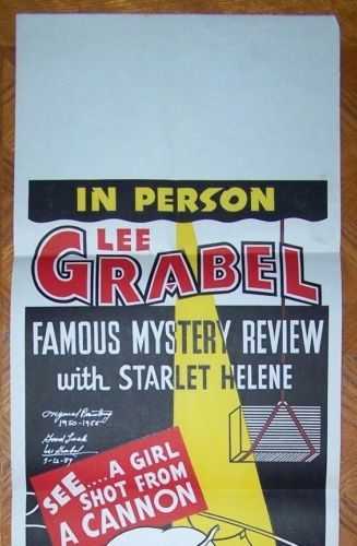 Original Vintage ca. 1950's Original Vintage ca. 1950's Lee Grabel Signed World Famous Mystery Review Magic Poster