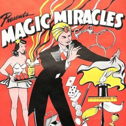 This vintage item is for a MAGIC MIRACLES MAGICIAN poster circa 1950s. Measures in inches 17" x 19" poster, pictures magician, sexy assistant, cards, coins, rabbit, handcuffs, etc. Item will arrive rolled to preserve its integrity. This is new old stock never used or circulated in excellent condition.