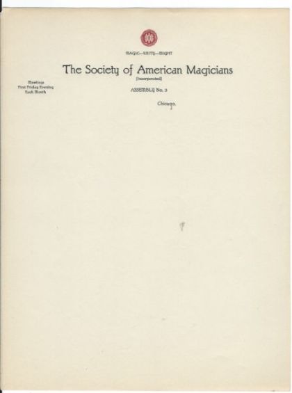 Society of American Magicians Assembly No. 3, Chicago Illinois. Sam Logo on top.