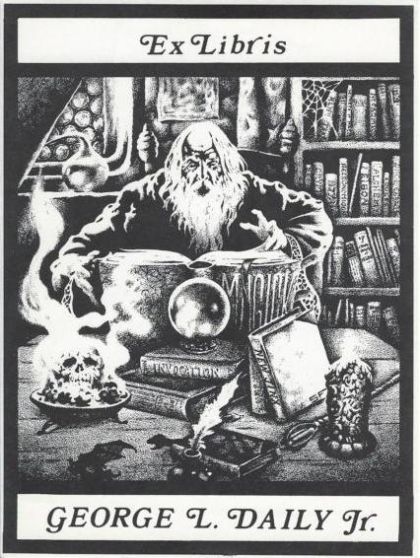 Bookplate-George L. Daily-Spooky Wizard in Library-