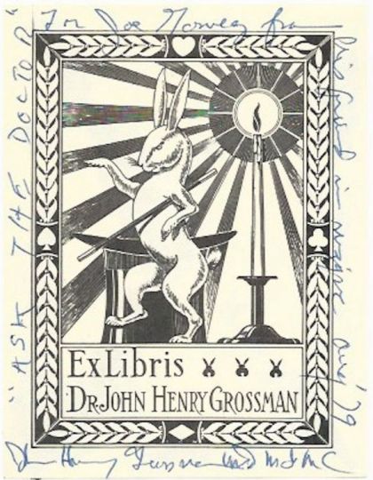 Magician's Bookplate-Dr. John Henry Grossman-Signed-Rabbit/Wand-1979-v.FINE