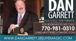 Dan Garrett has performed as a guest artist and numerous magicians’ conventions, many of them in [multiple] years, as a lecturer, emcee, close-up and/or stage performer. Here is a partial list of US conventions: