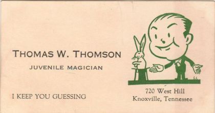 Thomas W. Thomson, Juvenile Magician, was from Knoxville, TN. This is his business card, about 2x4" size.