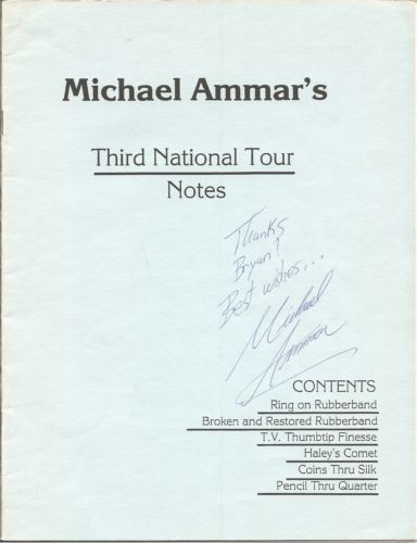 Contents (numbers are not page numbers): Much of Michael's early material has been re-printed in the hardcover The Magic of Michael Ammar.