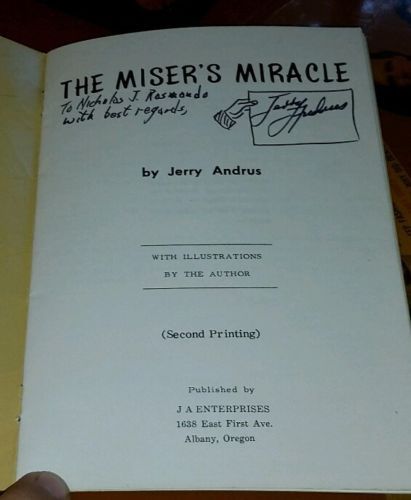 The Miser's Miracle by & signed by Jerry Andrus 1961 Magic Book