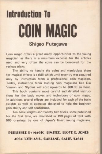 TShigeo Futagawa is without a doubt one of the top coin workers living today. A humble man who would have all the right in the world to be not quite so humble. Introduction to Coin Magic is a wonderful book. It is not just for the beginning coin student but for anybody who would like to brush up on some basic moves and learn several new outstanding routines.