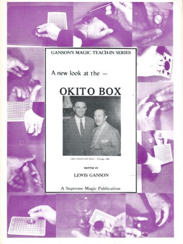 Comments (Lybrary.com): In 1911, Okito was in partnership with Joe Klein in a magic shop on Broadway, New York. Joe suffered from indigestion and kept his boxes of pills in a drawer in the shop. Okito often handled the pill boxes and noticed that the lid would fit on both bottom and top and in each case, the box looked the same. He had some made up in metal instead of cardboard, of such a size as to take coins and so the "Okito Coin Box" was born. Since they were first marketed by the Bamberg Magic and Novelty Company, dealers all over the world have manufactured and sold these boxes. Different ideas have been incorporated, such as weighting the bottom to make it turn over easily. You will learn all the basic moves as well as many advanced techniques. Lewis Ganson included a chapter on magnetic coins and how they can be used in combination with the Okito Box. There is also a routine, "Boston Two Step", by Alex Elmsley using the Boston Box. There is no better place to start studying the Okito Coin Box. This was part of the famous Ganson Teach-In series originally published by Supreme Magic Inc. Rights are now owned by Martin Breese.
