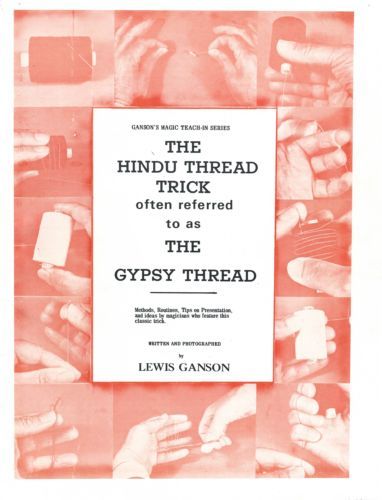 Comments (Lybrary.com): The Gypsy Thread trick is one of those classic effects in the same league as a linking ring or cups and balls. A thread is broken into several short pieces and then magically restored into one long piece of thread. Many of the best magicians have made the gypsy thread a feature of their performances: Fred Kaps, Dany Ray, Ricky Jay, Billy McComb, Ali Bongo, Hans Trixer, Marconick and Eugene Burger to name just a few. Lewis Ganson teaches in detail with text, photos and illustrations the ins and outs of this routine. This was part of the famous Ganson Teach-In series originally published by Supreme Magic Inc. Rights are now owned by Martin Breese.