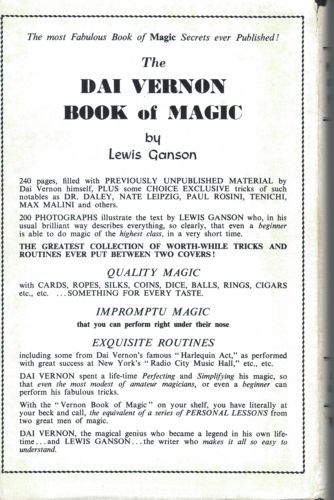 Lewis Ganson - Dai Vernon book of Magic bibliography