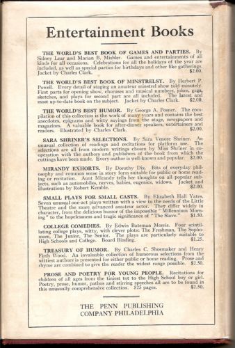 1927, 1st edition, very good condition, two small rub marks to cover, and evidence of a small sticker on the spine, with a very good dust jacket, small chips to dust jacket edges, published by The Penn Publishing Company, Philadelphia, 319 pages. A compilation of some excellent Magic Tricks, with cards, coins, thimbles, billiard balls, etc., also a section on platform Magic, stage illusions, and a section of Carl Brema's Magic.