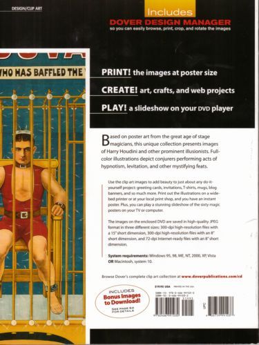 Based on poster art from the great age of stage magicians, this unique collection presents images of Harry Houdini and other prominent illusionists. Full-color illustrations depict conjurers performing acts of hypnotism, levitation, and other mystifying feats. Posters can be used in arts and crafts projects, printed at poster size, and played as a slide show on a computer or DVD player.
