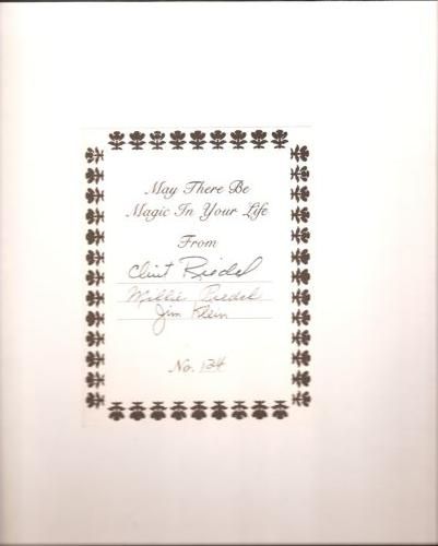 Comments: From the front flap: "The Magic of Riedel includes information based on Clint and Millie Riedel's 60+ years of magic. They offer you their years of experience about things such as advertising, raising livestock, costuming, assistants, show programming, music, building magic tricks, and more." Filled with tons of B&W photographs and illustrations.
