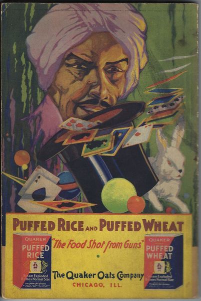Comments: "featuring Quaker Puffed Wheat and Puffed Rice, the two cereals which children in 42 states voted 'Most Delicious of all Cereals'" Compliments of The Quaker Oats Company. There was a previous book in the series, "Dick Daring's Bag of Tricks".