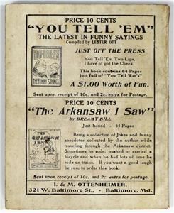 Interesting advertising on back and inside for "The Arkansaw I Saw" by Dreamy Bill a newly released 10 cent book.