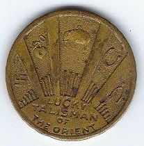 REV: 5 figures, sunburst, "Lucky / Talisman / of / The Orient".