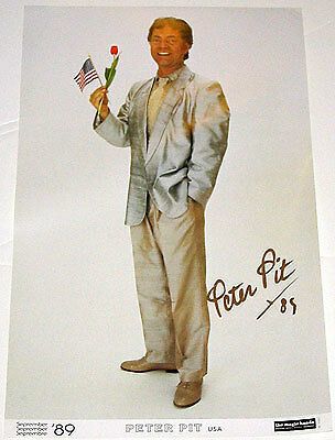 This special, full-color, coated stock, 11x17 inch poster is the September 1989 issue of the Magic Hands poster series. It was personally hand autographed by Peter Pit in 1989 with a gold tip marker.