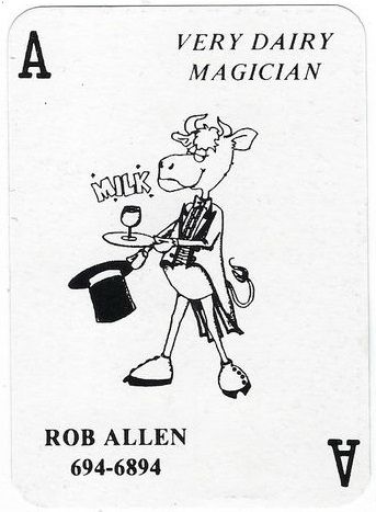 FRONT: Cow Magician with Milk on Tray in center, with his name and phone number.