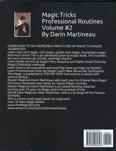 LEARN HOW TO DO INCREDIBLE NEW CLOSE-UP MAGIC TO AMAZE YOUR FRIENDS AND AUDIENCES!Learn new card magic, coin magic, jumbo coin magic, impromptu magic and much more!This is an advanced close-up magic book. The routines are very commercial, artistic, and High Impact!Learn inside secrets to magic! Very Amazing and highly visual Close-Up Magic! Diabolical methods! Learn how to do innovative and stunning close-up magic to Mystify!Learn Professional Close-Up Magic! Learn New Advanced Techniques!This Magic is explained in STEP-BY-STEP instructions in detail with several photos.Master Magician Darin Martineau will teach you his Original New Magic! Also learn awesome new twists on Classic Magic routines.Master Magician Darin Martineau is an award-winning magician and has over 35 years in Magic and is the protégé of the World Class Magician Allan Ackerman- who is a protégé of the famous Ed Marlo.This is a must read magic book for magicians!