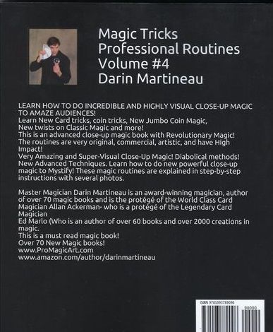 LEARN HOW TO DO INCREDIBLE AND HIGHLY VISUAL CLOSE-UP MAGIC TO AMAZE AUDIENCES!Learn New Card tricks, coin tricks, New Jumbo Coin Magic, New twists on Classic Magic and more!This is an advanced close-up magic book with Revolutionary Magic! The routines are very original, commercial, artistic, and have High Impact!Very Amazing and Super-Visual Close-Up Magic! Diabolical methods! New Advanced Techniques. Learn how to do new powerful close-up magic to Mystify!These magic routines are explained in step-by-step instructions with several photos. Master Magician Darin Martineau is an award-winning magician, author of over 70 magic books and is the prot?g? of the World Class Card Magician Allan Ackerman- who is a prot?g? of the Legendary Card Magician Ed Marlo (Who is an author of over 60 books and over 2000 creations in magic)This is a must read magic book!