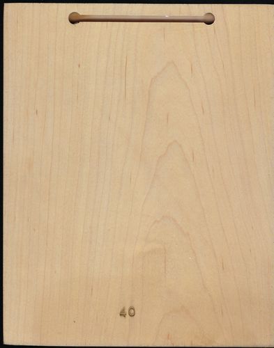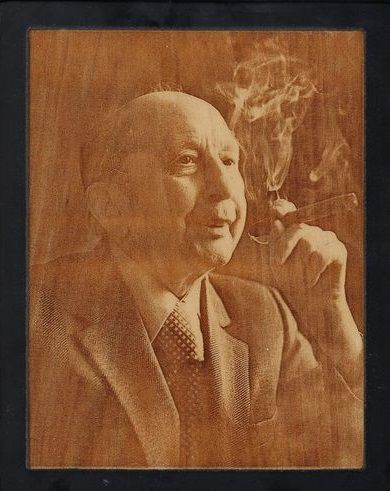U.F. Grant wood burn in a piece of solid oak