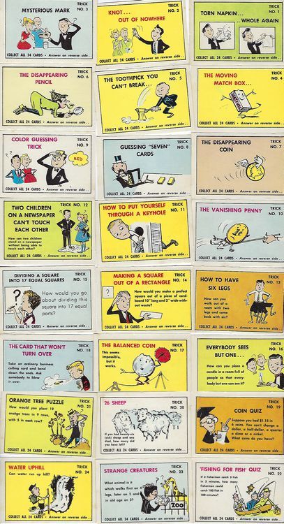 Fun With Pop Magic Tricks Complete 24 Card Set DCA Foods Premium 1950’s