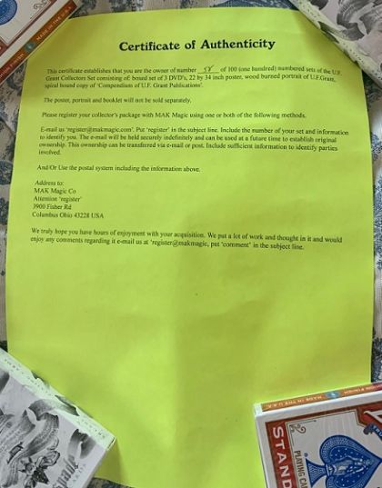 'Gen', or 'The Little General' as he is sometimes referred to, was a descendant of General U. S. Grant and is named for the General as well as the General's son.[1] Grant started in Pittsfield, Massachusetts, where he created his first tricks. Later he moved to New York City joining the Abbott Magic & Novelty Co., eventually settled in Columbus, Ohio creating his own firm, "U.F. Grant Magic".