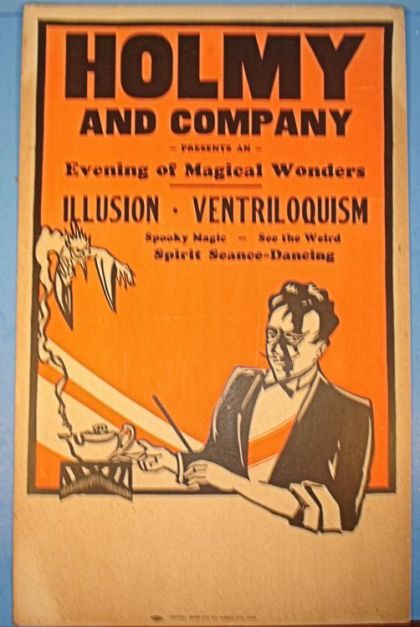 Here is a Holmy & Co Window Card, with Spooky Magic....Spirit Seance....Magical Wonders...etc. No background info on him. If any fellow magic collectors know the name and have background info on him, please email me so I can post it here.-
