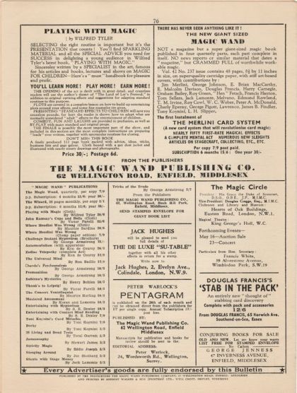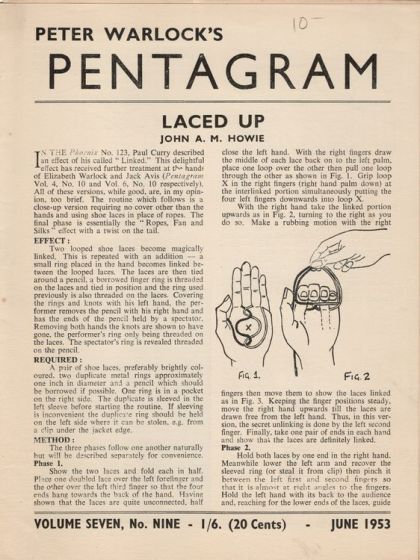 Peter Warlock (born Alec William Bell), was a semi professional magician and publisher of "Pentagram" 1946-1959, "new Pentagram" 1969-1989. In 1952, he was awarded the IBM's British Ring Shield. His magician daughter, Elizabeth (see above) won the award in 1953.