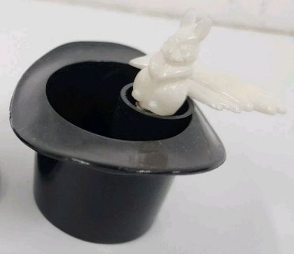 This vintage Commonwealth Magic Hat Trick Rabbit Pop Up Top Hat Toy is a charming and nostalgic collectible that will delight both children and adults alike. Made in the United States with no modifications, it harkens back to a bygone era of magic and wonder. With its unique design and ability to surprise and entertain.