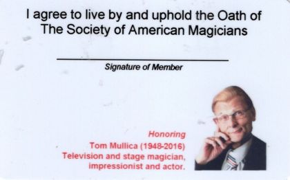Also with this new membership card, you will notice a 4 of spades red-colored pip on the back. You can use this as an out, devise your own trick, or use the trick I describe below. By using your membership card, you can show your pride in the S.A.M. and generate interest in the oldest magic organization in the world. Each year, you will receive a new magic trick with your new membership card. Watch for a YouTube video link of the trick on the S.A.M. website, www.magicsam.com.